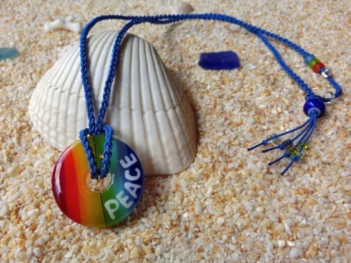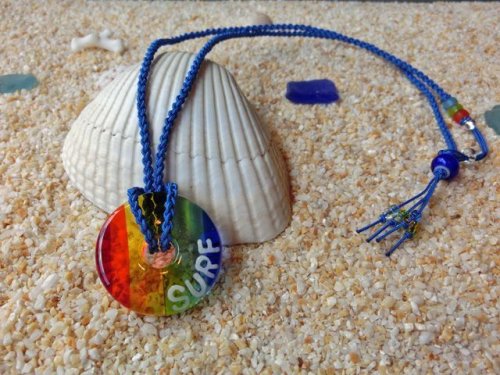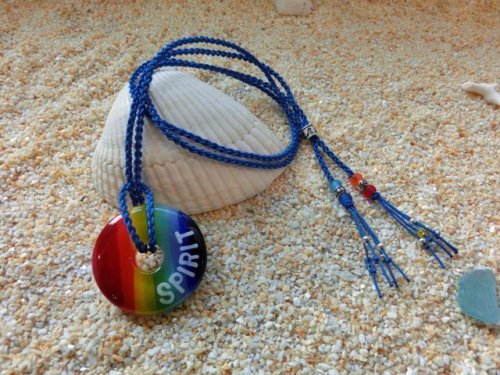 クリアガラスの上にカラーガラスを虹色に並べたSEA・レインボーネックレスです。「透き通る海にかかる虹」をイメージし、下の層(クリアガラス)を透き通る海に見立てデザインしました。クリアタイプのレインボーカラーは白Teeシャツや素肌に合わせると、特に素敵に映えてくれます。